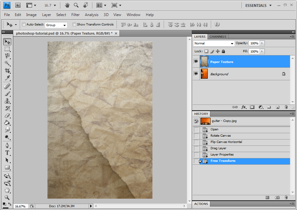 There is a more or less flat backdrop to the guitar. We want to introduce a texture here. You can download textures from the internet, like this crumpled paper texture that I chose: