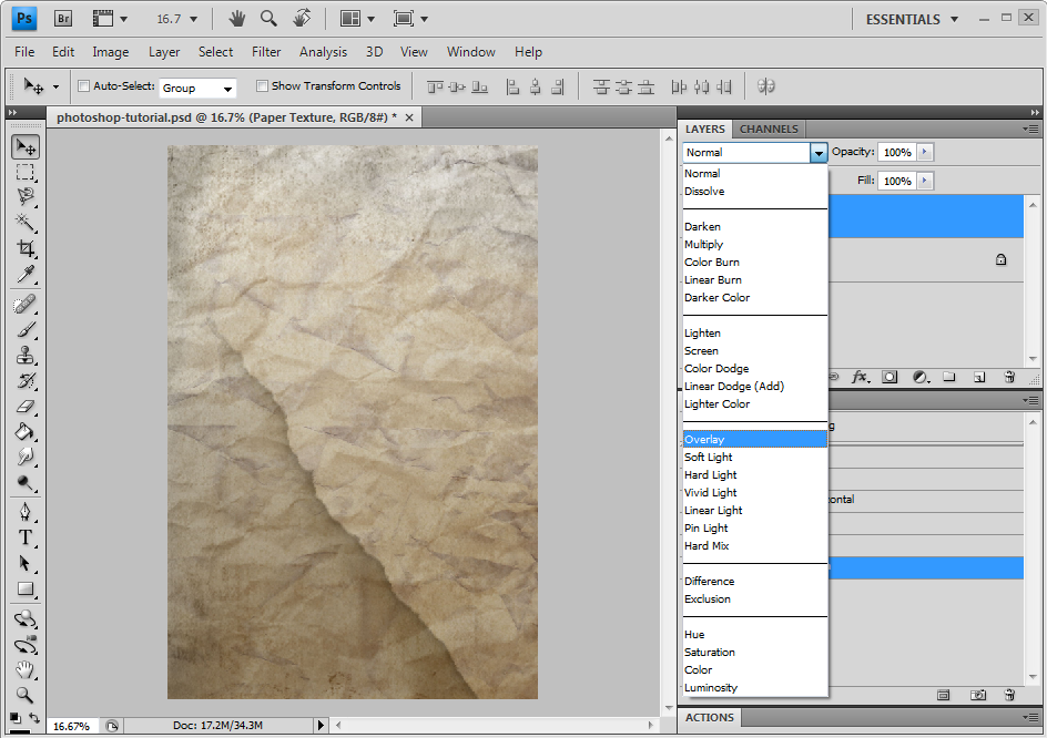 Now comes the magic. Set the blend mode of this layer to overlay. You can experiment with some of the other modes too to get your desired result: